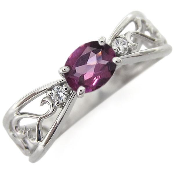 ハート&アラベスクのデザインのリングに、紫の色味をしたロードライトガーネットを組み合わせたリングです。ガーネットはオーバル型で、全体的にクラシカルな印象があります。