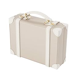 カフェラテ系のカラーがかわいいトランク型のジュエリーボックスは、愛らしいデザインのアイテムを好む方にぴったりです。自分へのご褒美や、人へのプレゼントにもオススメ。コンパクトながら、リングを収納できるスペースもしっかり作られています。