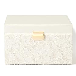 インテリアブランドの大容量ジュエリーボックスをお探しであれば、フランフランのLサイズを選ぶのがオススメです。レース風のかわいいデザインが特徴的。ネックレスをかけられるフックや指輪を差し込めるスペースがついており、収納しやすい仕様です。