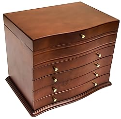 アンティーク風のデザインが好みの方にぴったりなのが、木製のジュエリーボックスです。他にはあまりない、なだらかなウェーブの形が印象的。カラーはブラウンとホワイトの2色です。種類の異なる4種類の引き出しがついているため、使いやすさの面にも期待できます。